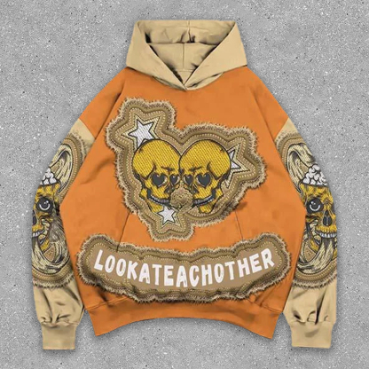 Faux tapestry skull hoodie