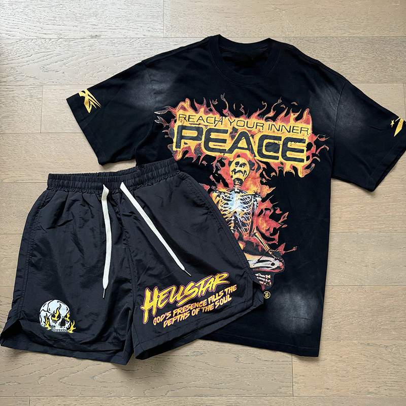 Flame Skull Casual Street T-shirt Shorts Two-Piece Set