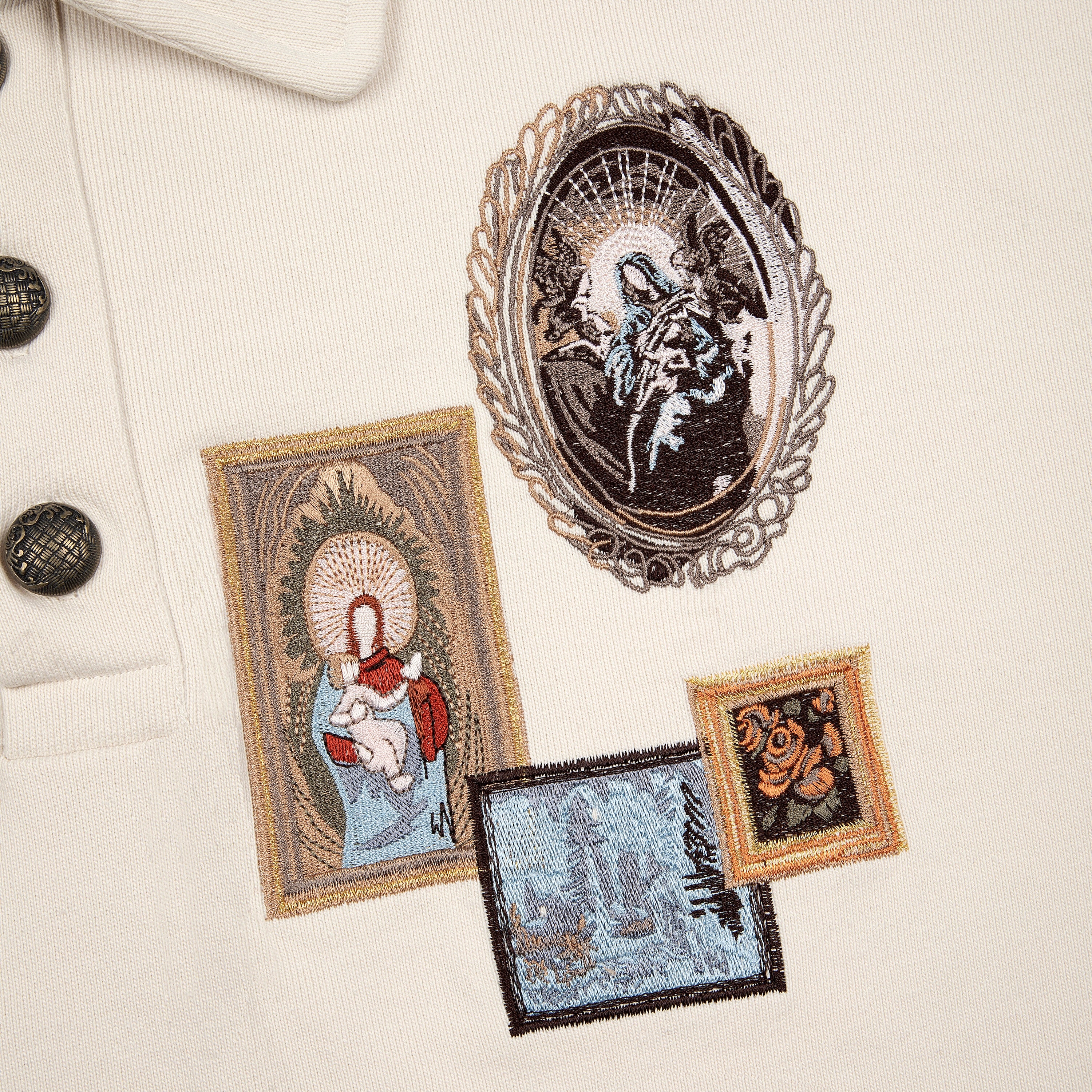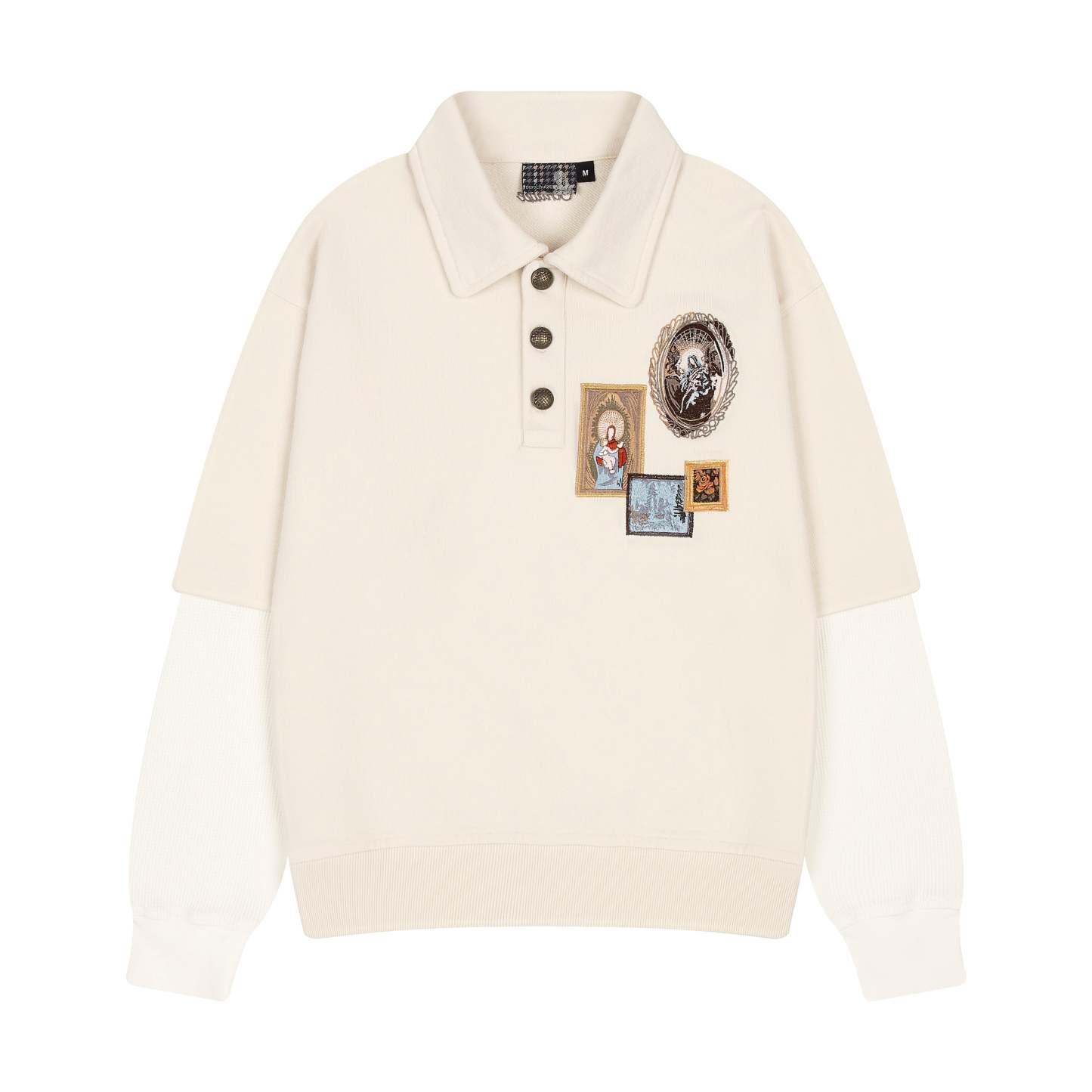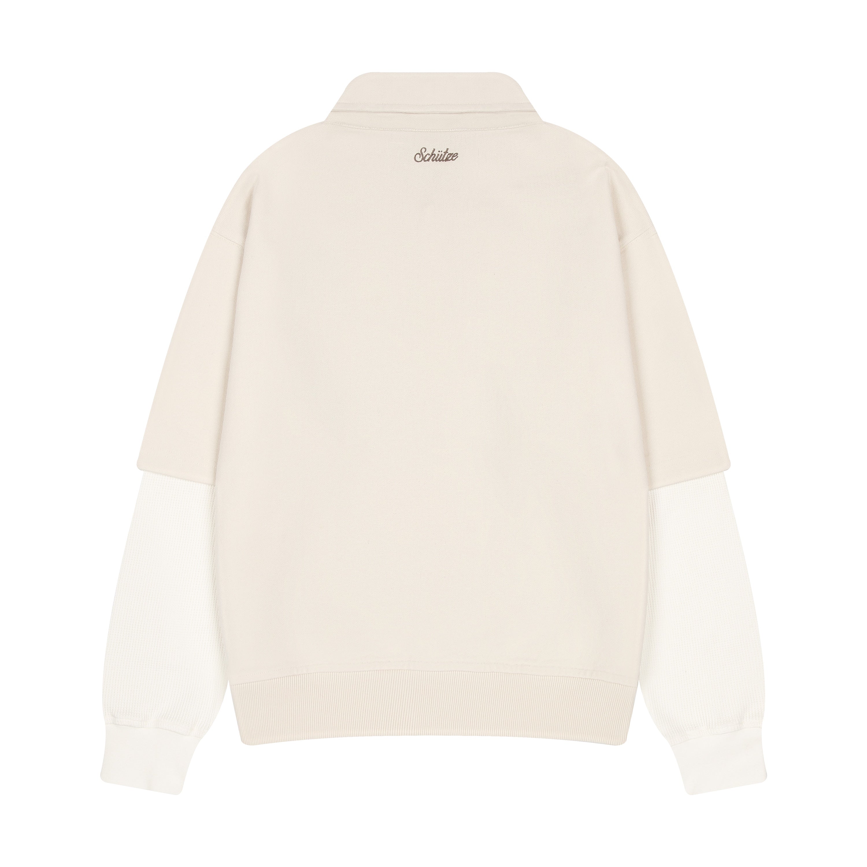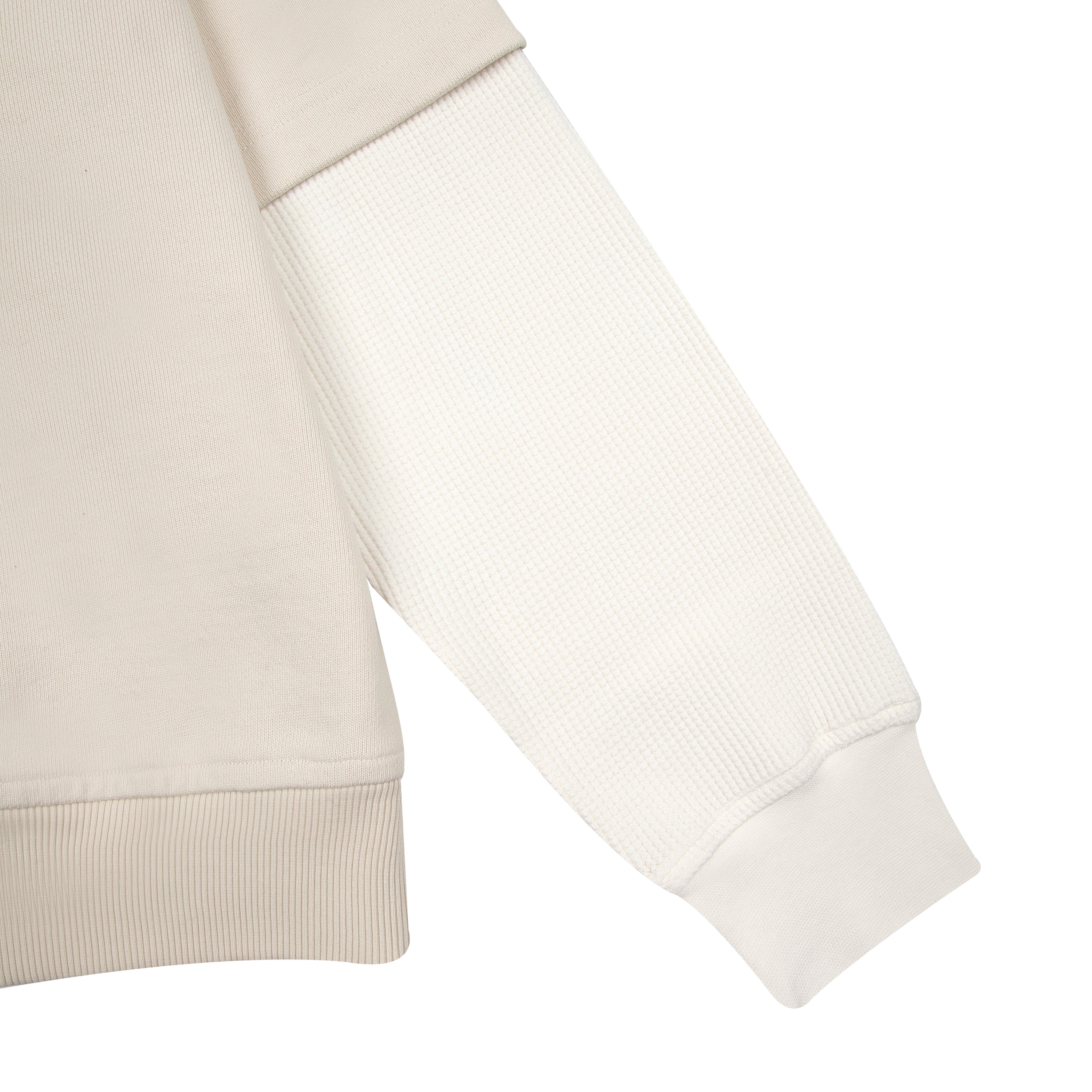 480gsm / 100% preshrunk cotton / waffle sleeves (280 gsm 97% cotton 3% EA) / embroidery on front and back / custom buttons / fits true to size