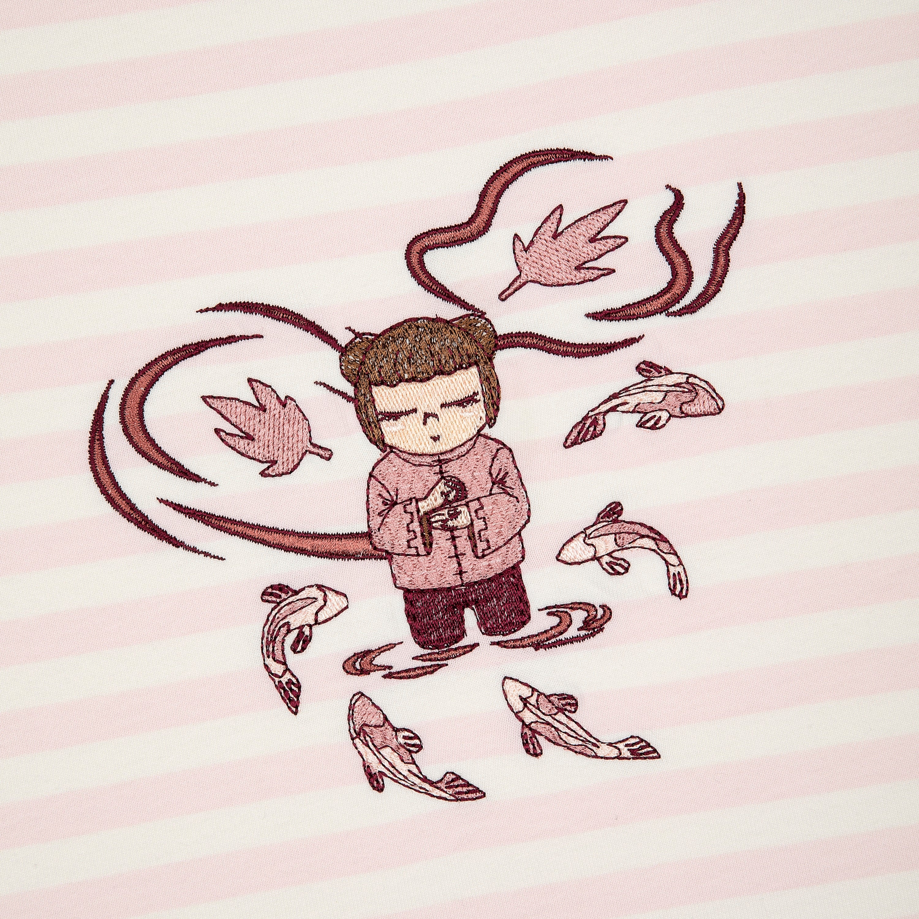 280gsm fabric / 100% preshrunk cotton / pink striped printed fabric / embroidery on front / fits true to size