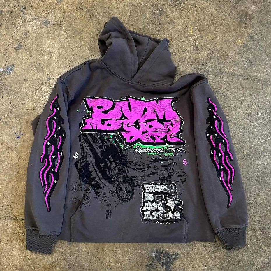 Letters Flame Print Long Sleeve Hoodies