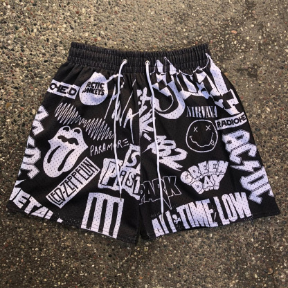 Letters Mix Print Mesh Sports Shorts