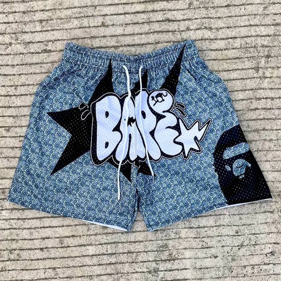 Lucky Star Casual Street Retro Skateboard Mesh Shorts