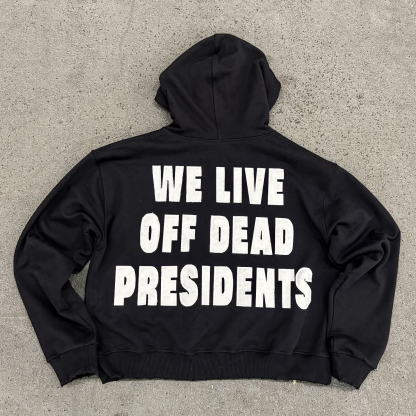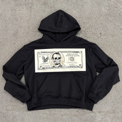 Money Letters Print Long Sleeve Hoodies