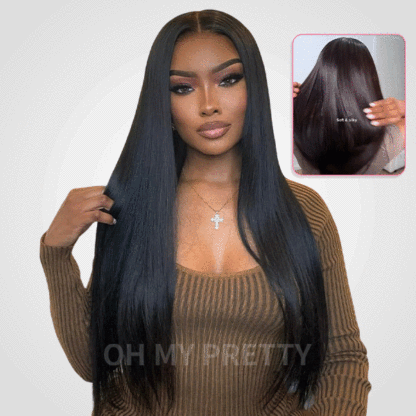 OhMyPretty Wear Go Glueless 9x6 Lace Straight Wig M Cap Super Natural Hairline Silky Human Hair Mini Knots Pre plucked &Pre Bleached & Pre Cut