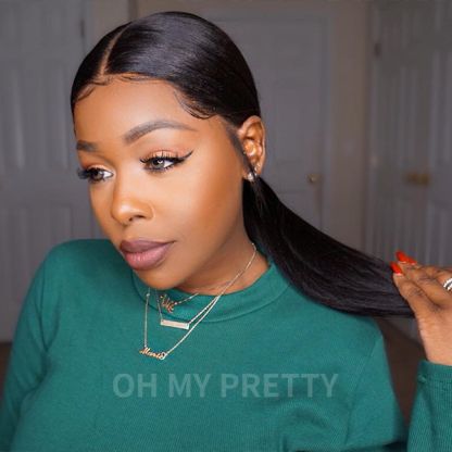 OMpretty 360 Straight Invisi Draw Strings Wear Go Glueless Pre-Bleached And Pre-Cut Lace Human Hair Wig