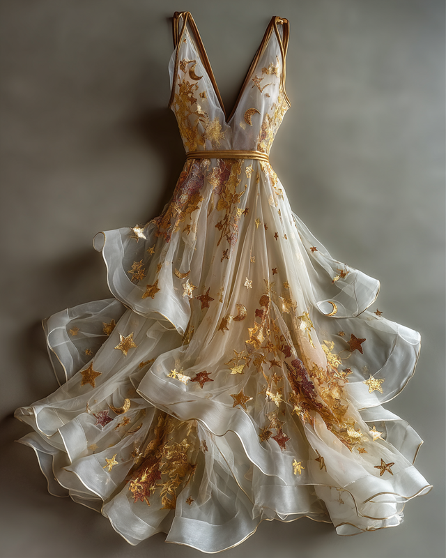 Original design summer satin moon and star dress 4110
