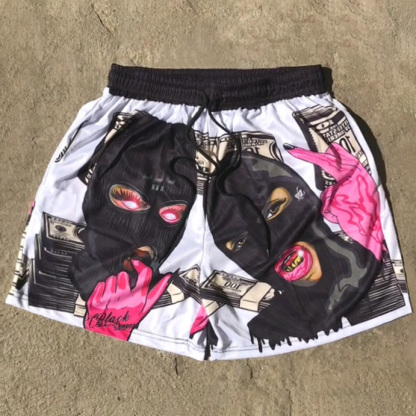 Punk Mask Girl Print Shorts