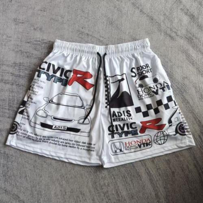 Racing print mesh shorts