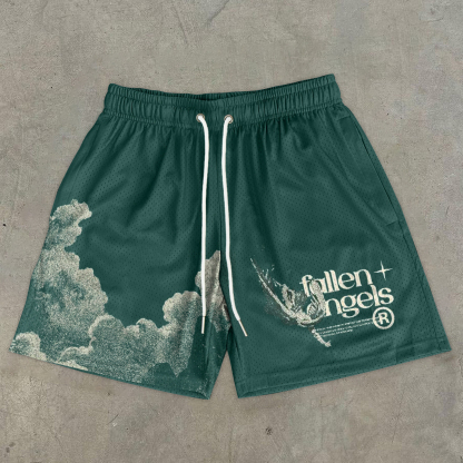 Relaxed Fallen Angel Print Stretch Shorts