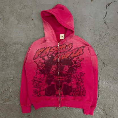 Retro Gradient Lettering Print Zip-Up Hoodie