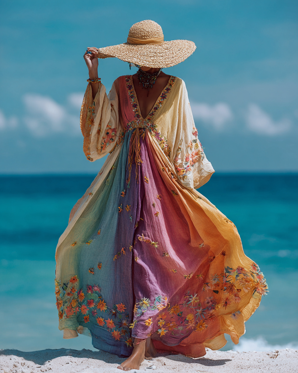 Seaside Vacation Bohemian Style Full-Length Dress 1540