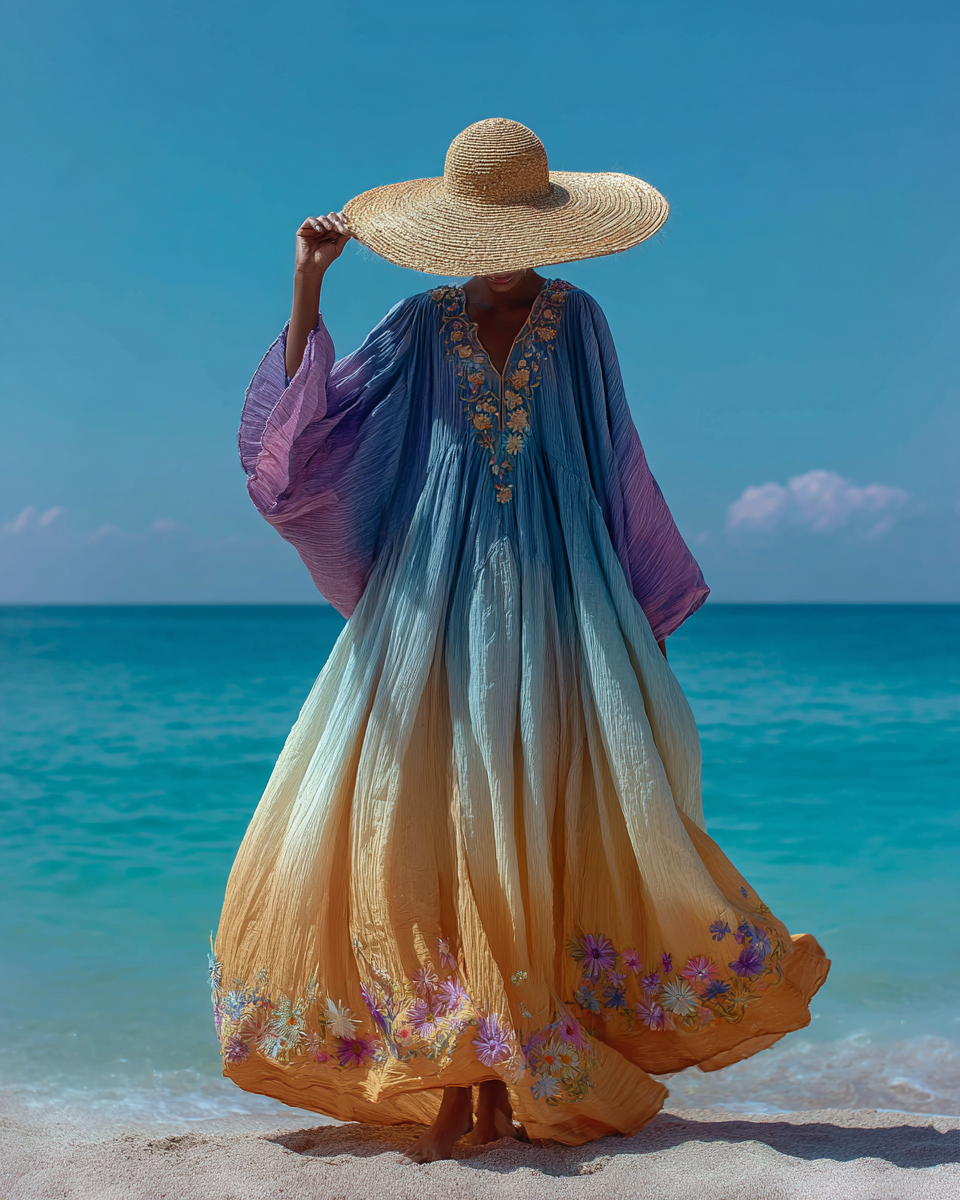 Seaside Vacation Bohemian Style Full-Length Dress 1701