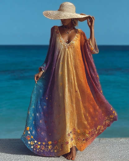 Seaside Vacation Bohemian Style Full-Length Dress 2872