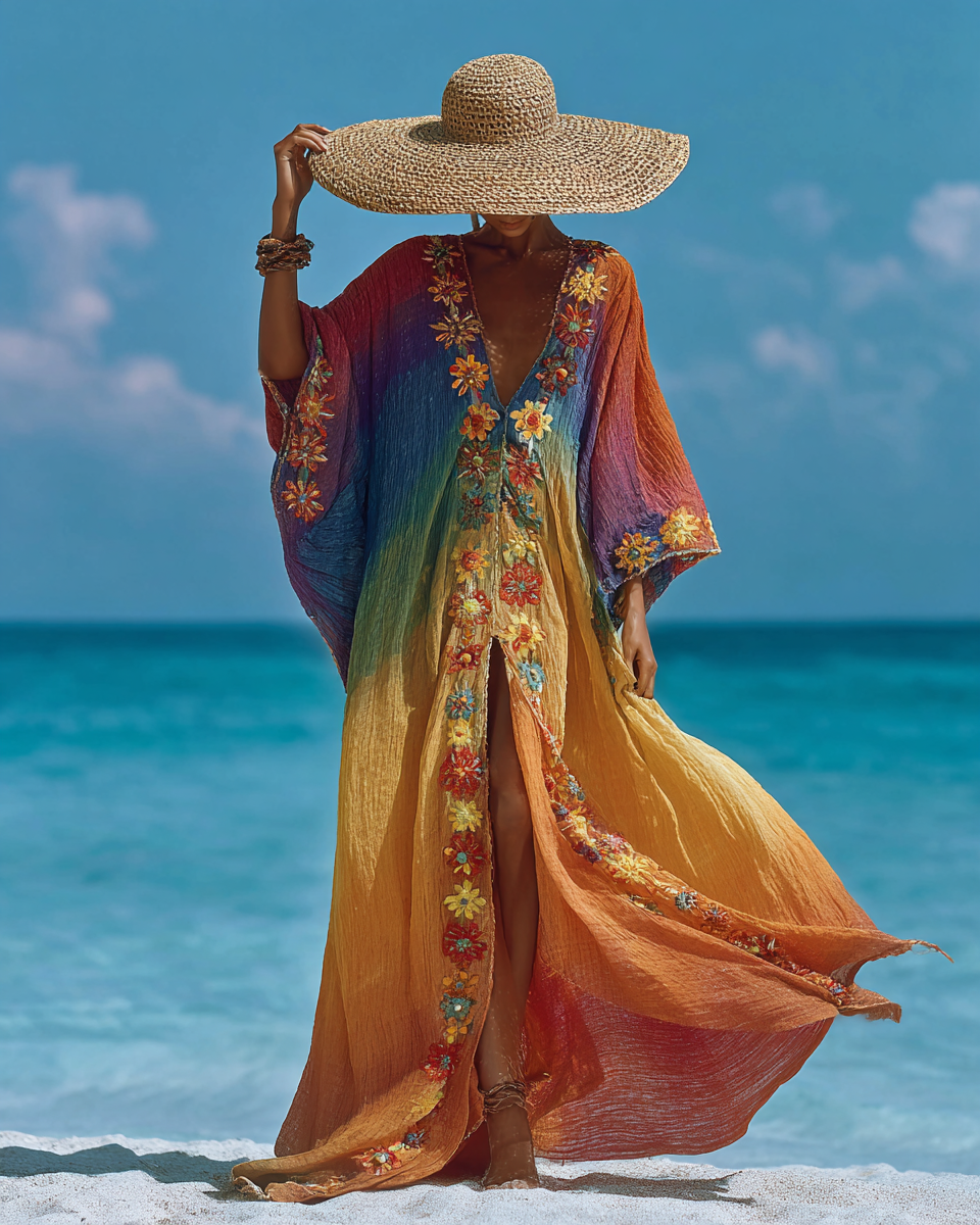 Seaside Vacation Bohemian Style Full-Length Kaftan Dress 6783