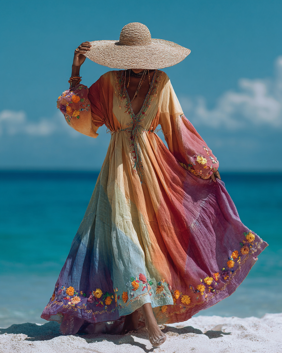 Seaside Vacation Bohemian Style Full-Length Dress 9284
