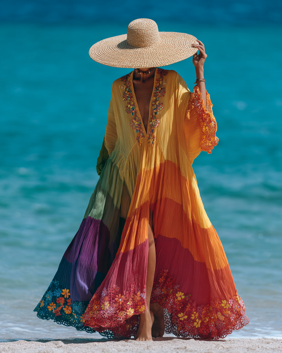 Seaside Vacation Bohemian Style Full-Length Dress 9380