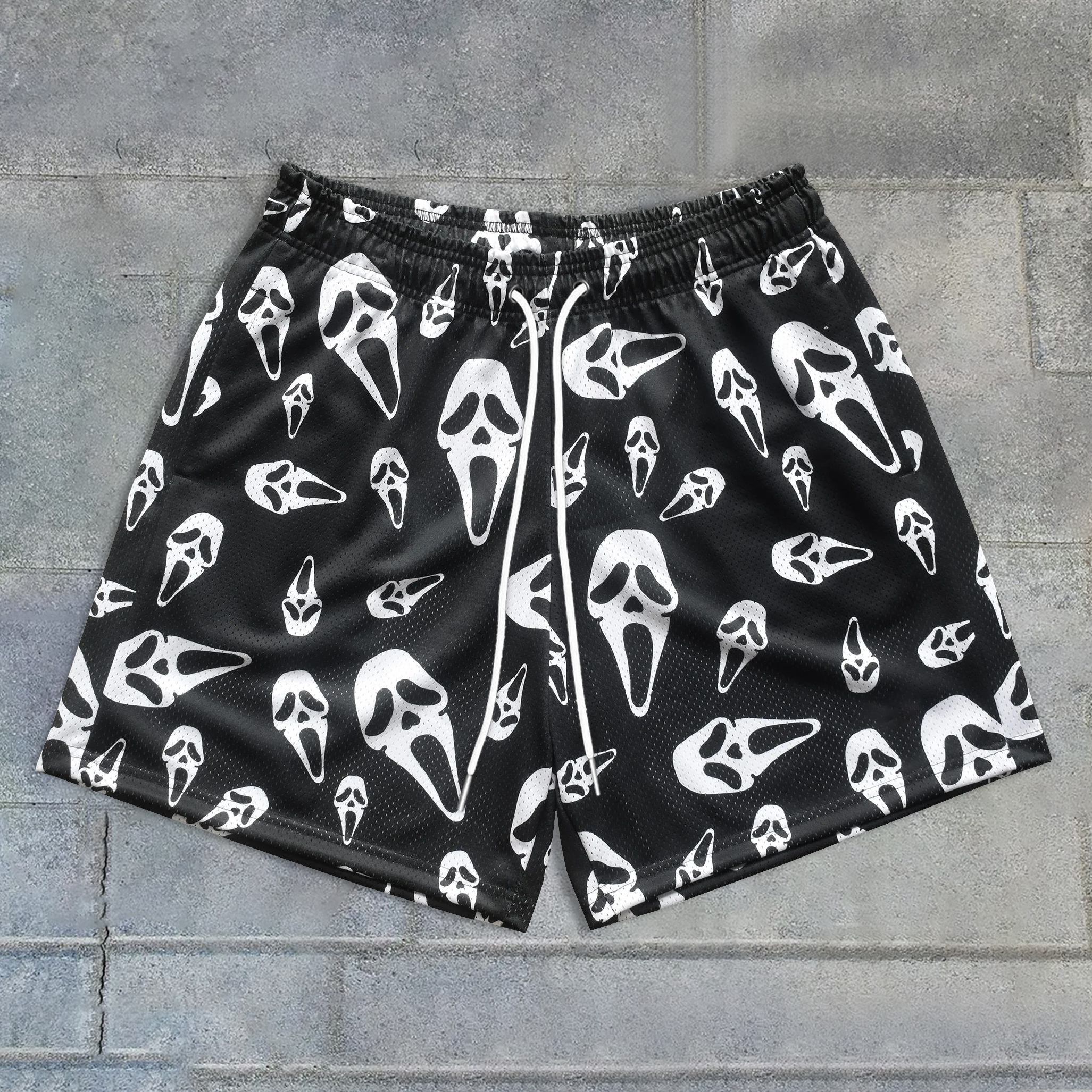 Skull print sports mesh shorts