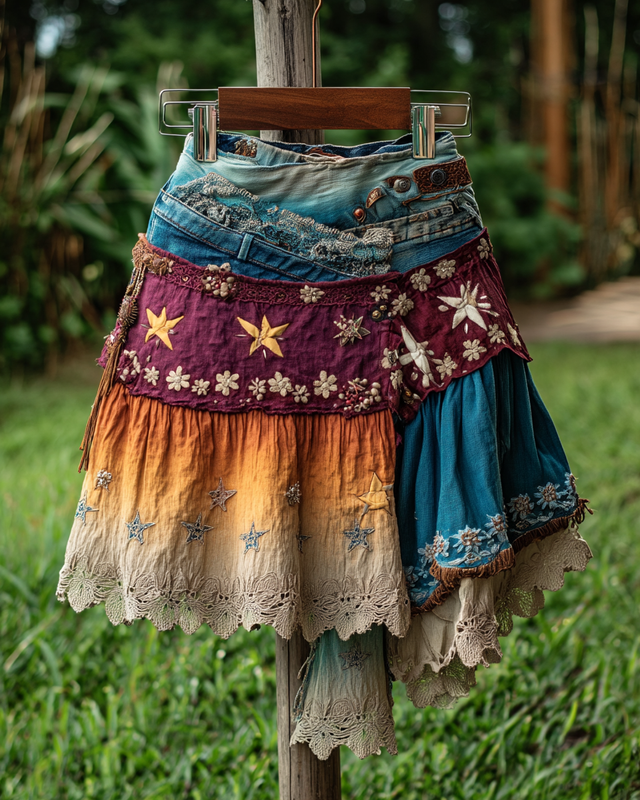 Spring/Summer Bohemian Style Color Block Denim Linen Skirt8183