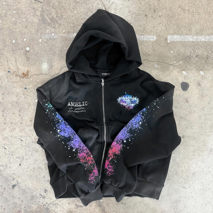 Starry Casual Street Style Zip-Up Hoodie