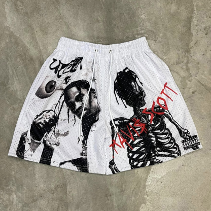 Stylish Character Skull Print Mesh Shorts