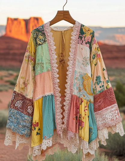 Summer cardigan with gradient stitching and embroidery 1c12