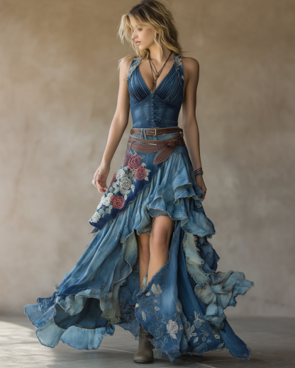 Summer outdoor ruffle patchwork dress3219