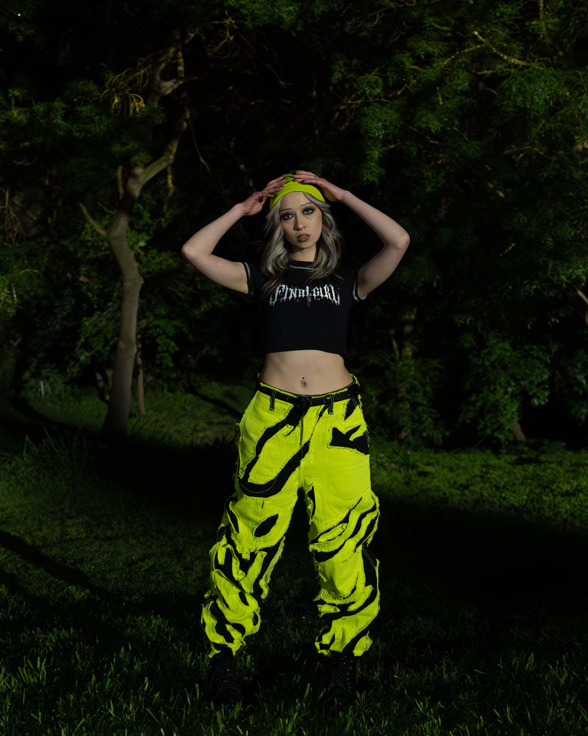 PLEASE NOTE: Sizing runs slightly smaller than the Dark Portal Pants. We recommend sizing up the Neon Portal Pants if purchasing both.