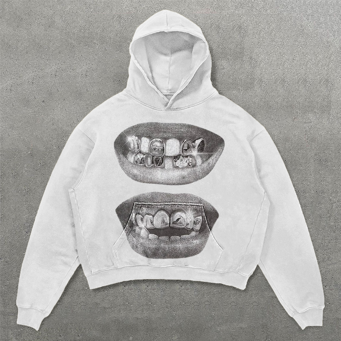 Vintage Teeth Print Long Sleeve Hoodies