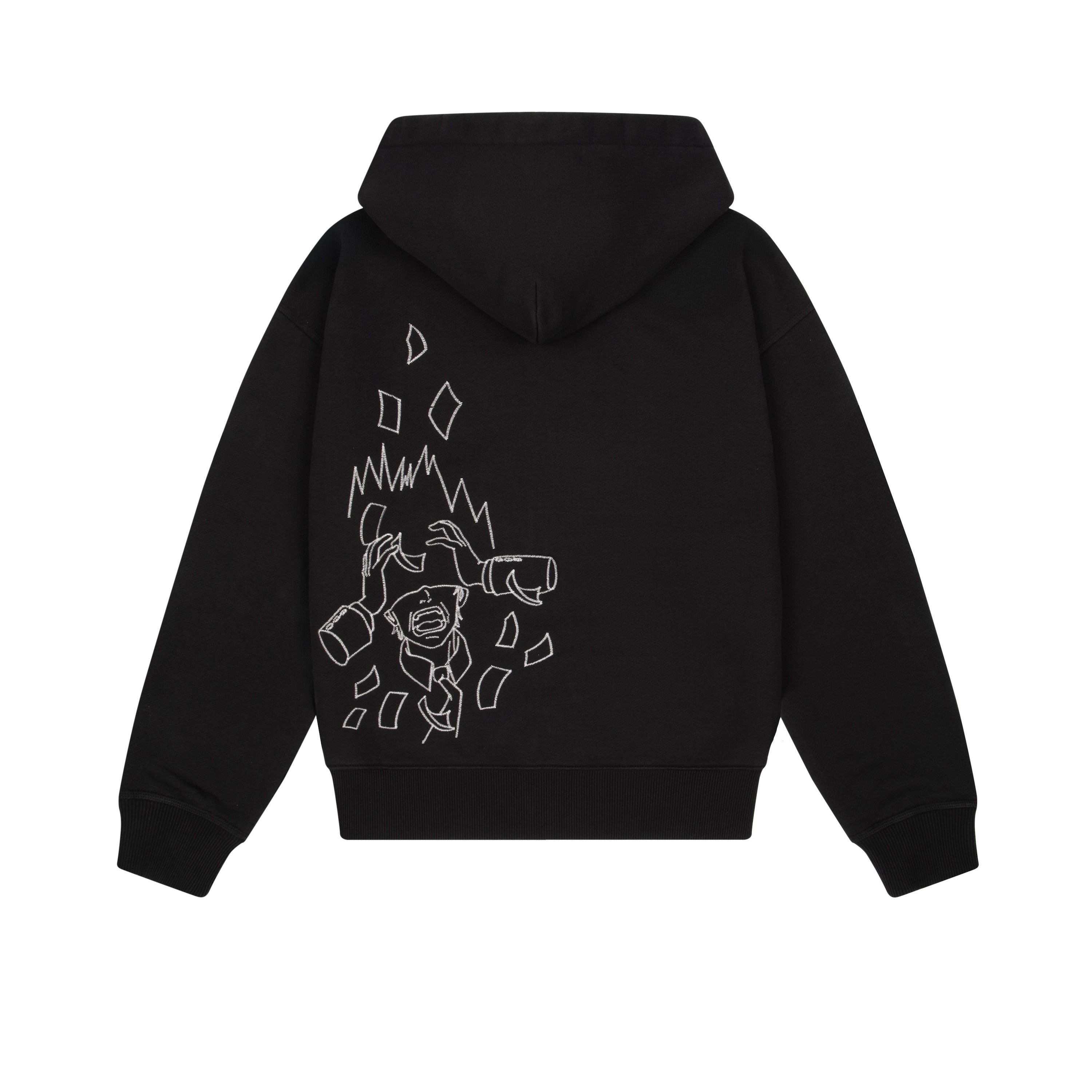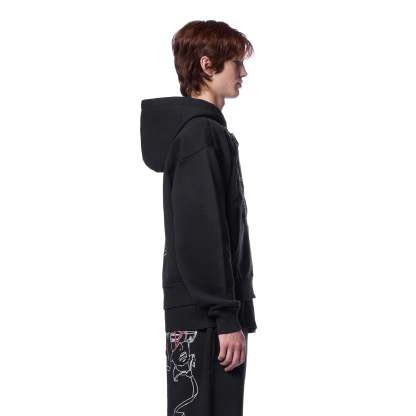 460gsm / 100% preshrunk cotton / embroidered tie patch from jersey fabric on front / embroidery on back / with double-slided YKK zipper / without cord / fits true to size