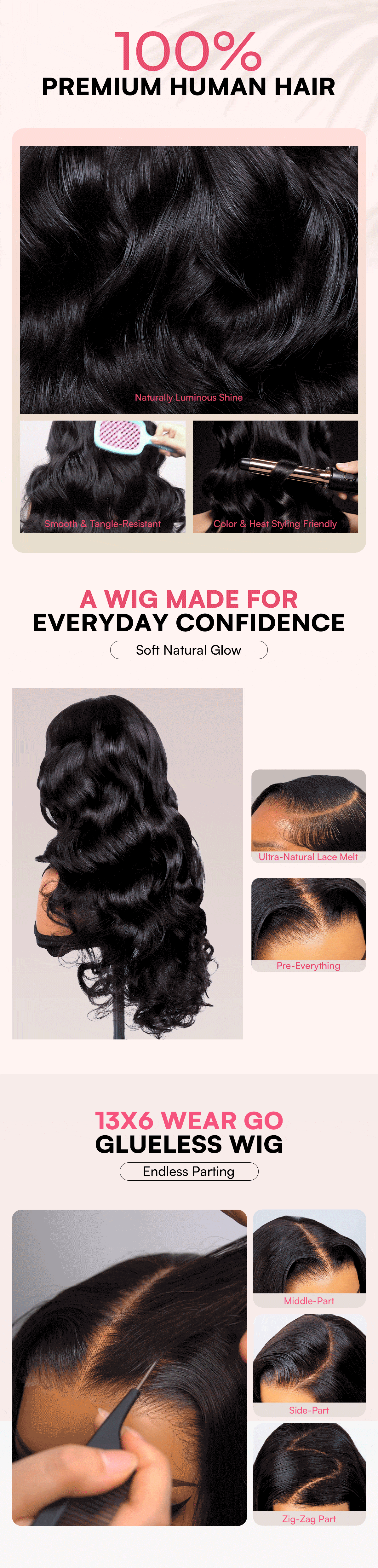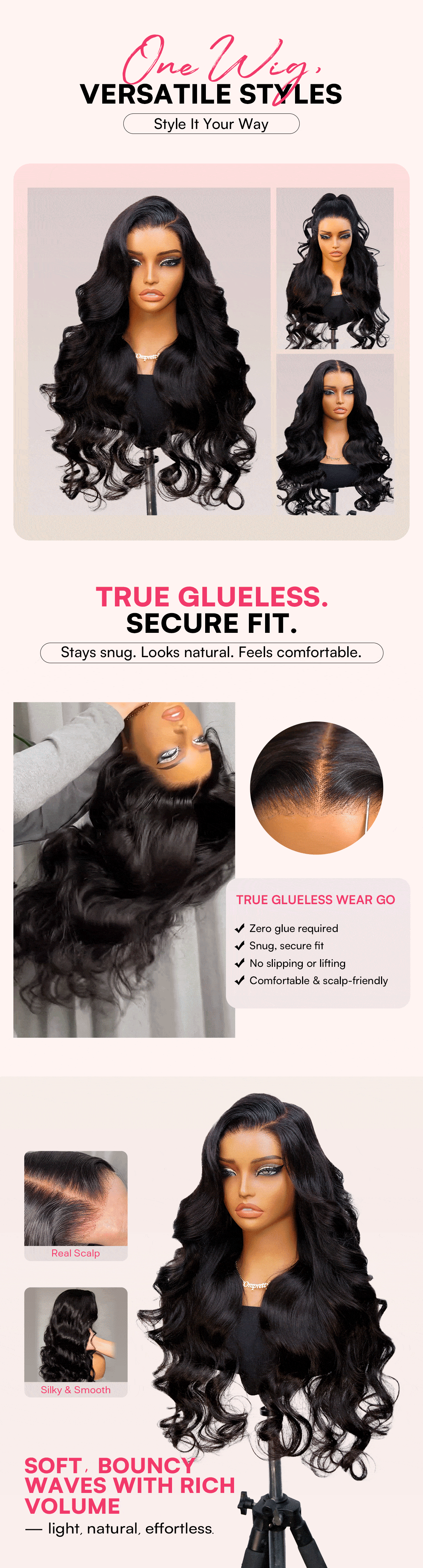 Luxury Wear Go 13x6 Body Wave Glueless Wig HD Lace Front Wig With Invisi Draw-strings