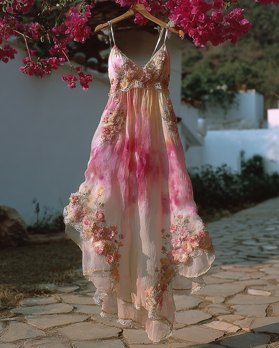 Women's Vacation Irregular Ruffle Flower Lace Mesh Dress 5566