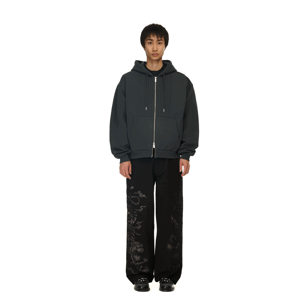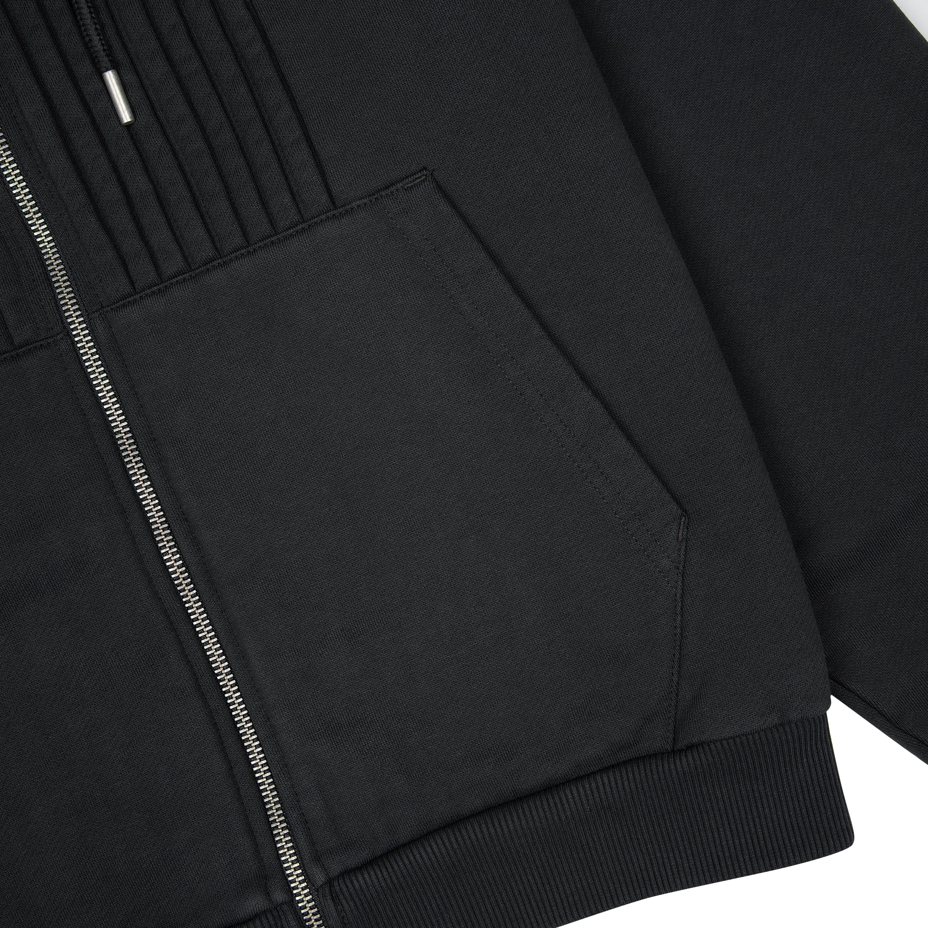 460gsm / 100% preshrunk cotton / ribbing on front / embroidery on back / with double-slided YKK zipper / with metal cord closures / fits true to size