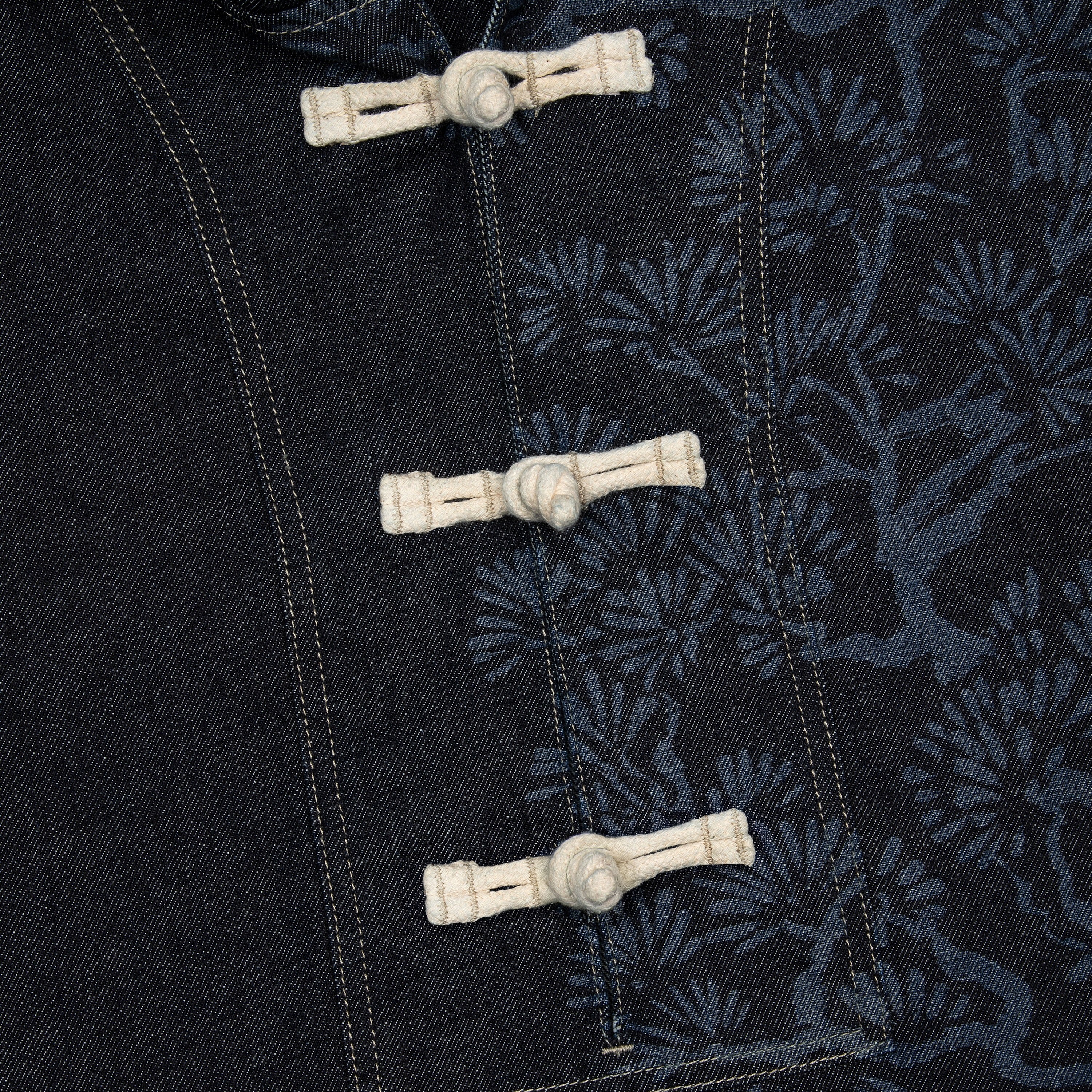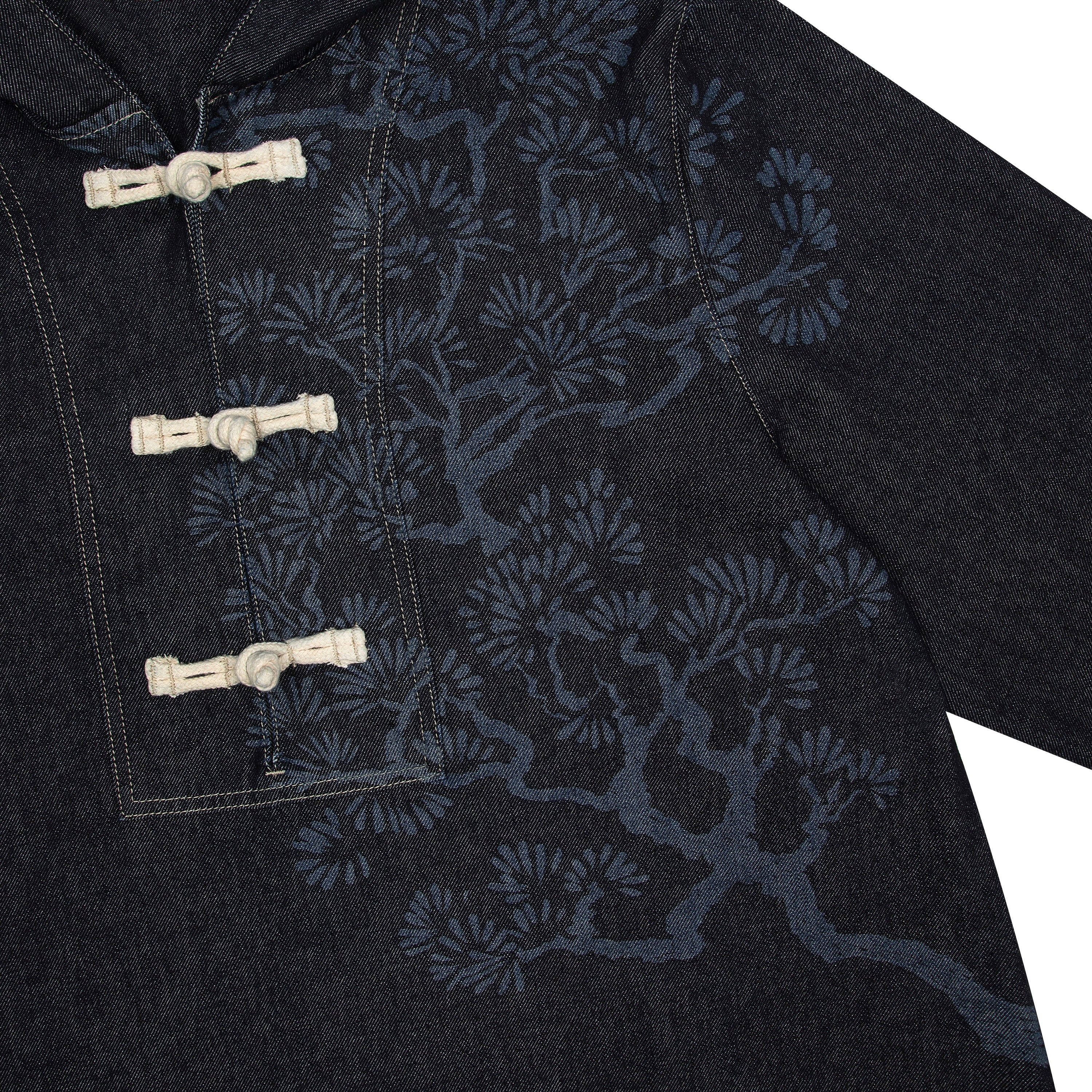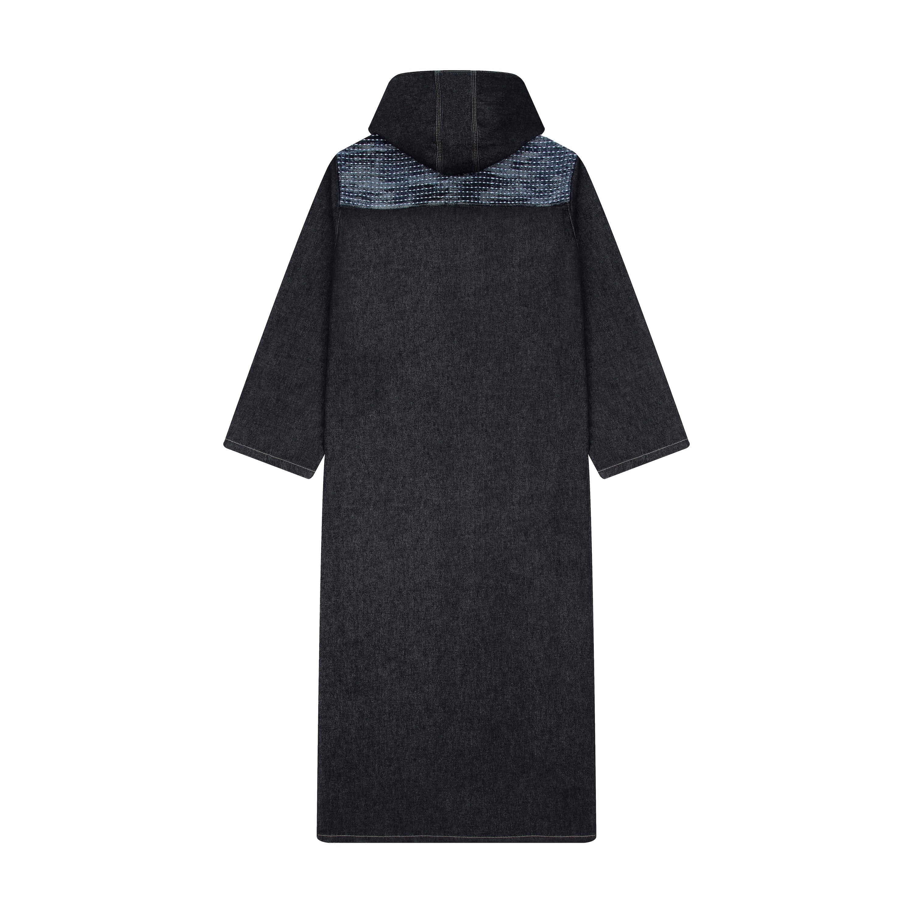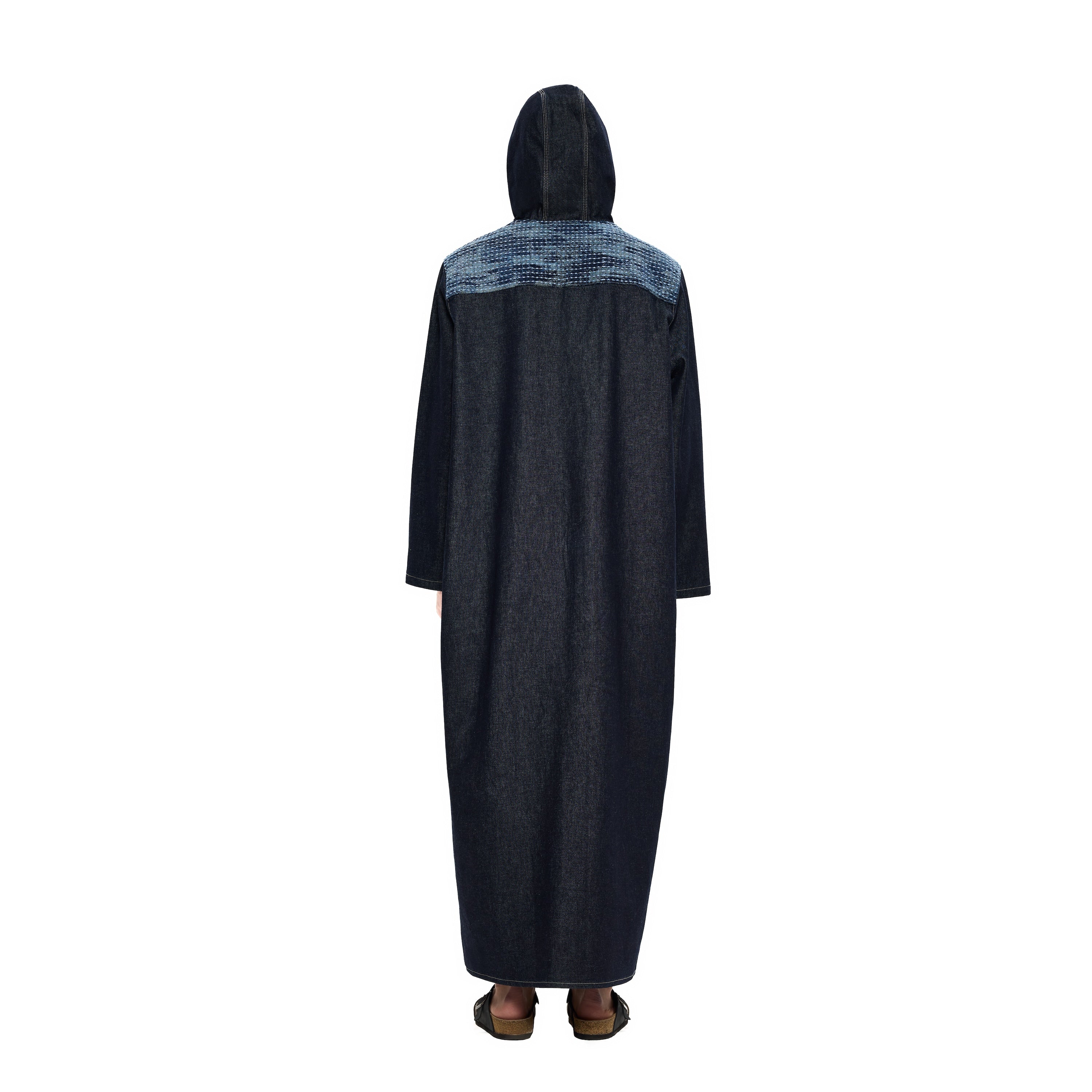 11oz raw denim / 100% cotton / laser print on front / boro style patchwork on back robe / closure cord / wash inside out / fits true to size / all profits will be donated