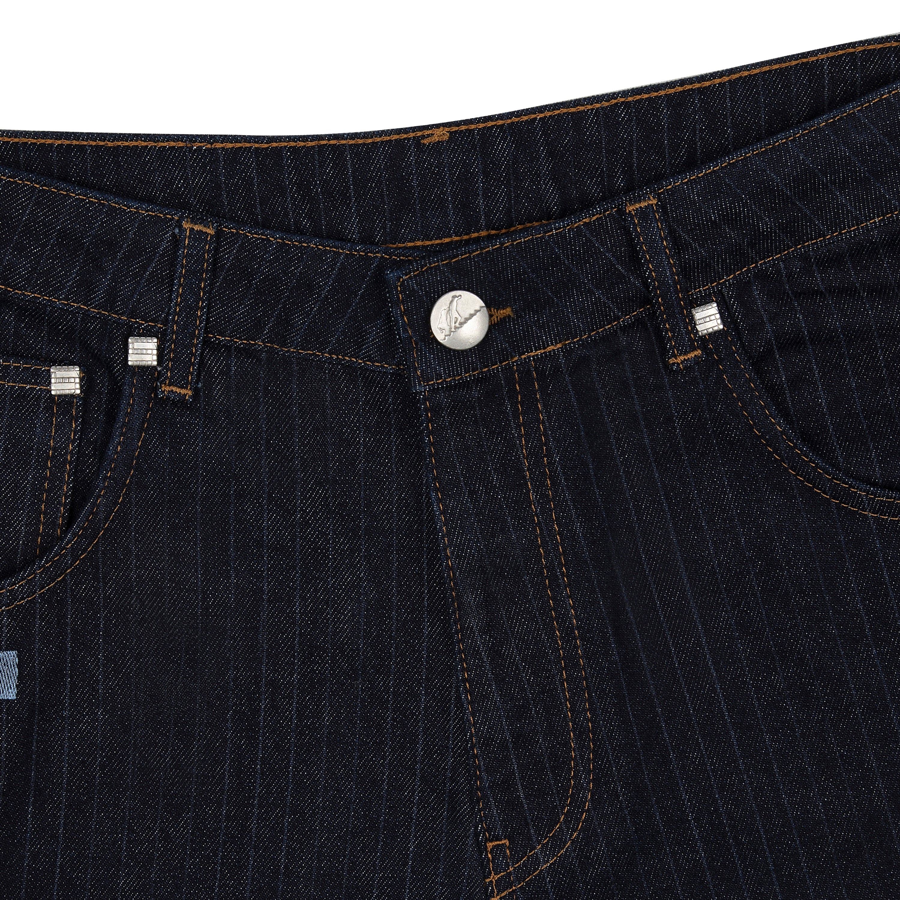 14,5oz raw denim / 100% cotton / laser printed stripes on front and back / embroidery on front and back / deboss printed leather patch / custom buttons / fabric may bleed or fade, wash inside out in cold water to preserve color and character / fits true to size