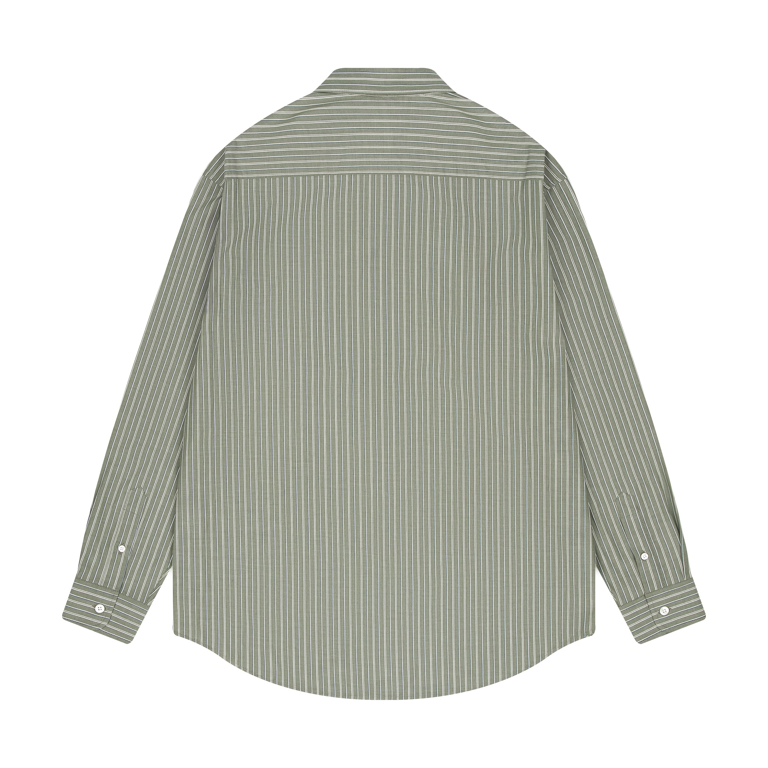 poplin fabric / 100% cotton / white-green striped / embroidery on front / custom buttons / curved hem / relaxed fit / fits true to size