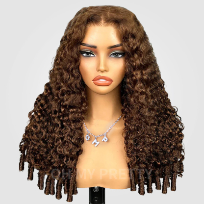 9x6 Burmese Curly Chocolate Brown Color Glueless Wig Pre Cut Lace Wear Go Wig With Elastic Drawstring