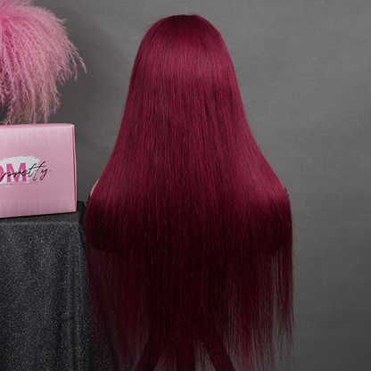 OhMyPretty Wear Go Glueless 99J Color Straight 7x5 Lace Wig With Pre-plucked Hairline Tiny Knots Pre-Cut Zig Zag Lace