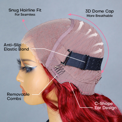 Medium size cap (about 22.5 inches), Removable combs, 3D Dome cap with elastic band