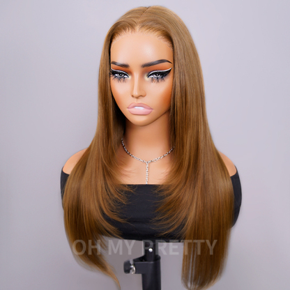 OhMyPretty Glueless Layered Cut Chestnut Brown Straight Wear Go 6x4 Lace Wigs Pre-Plucked Hairline Pre-Cut Lace Tiny Knots