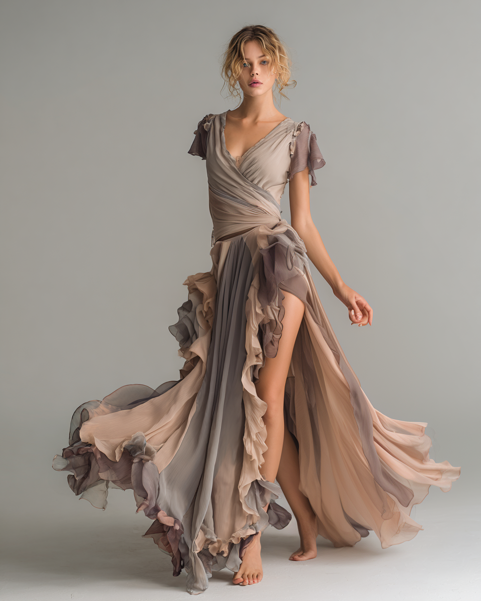 Summer outdoor ruffle patchwork dress9641